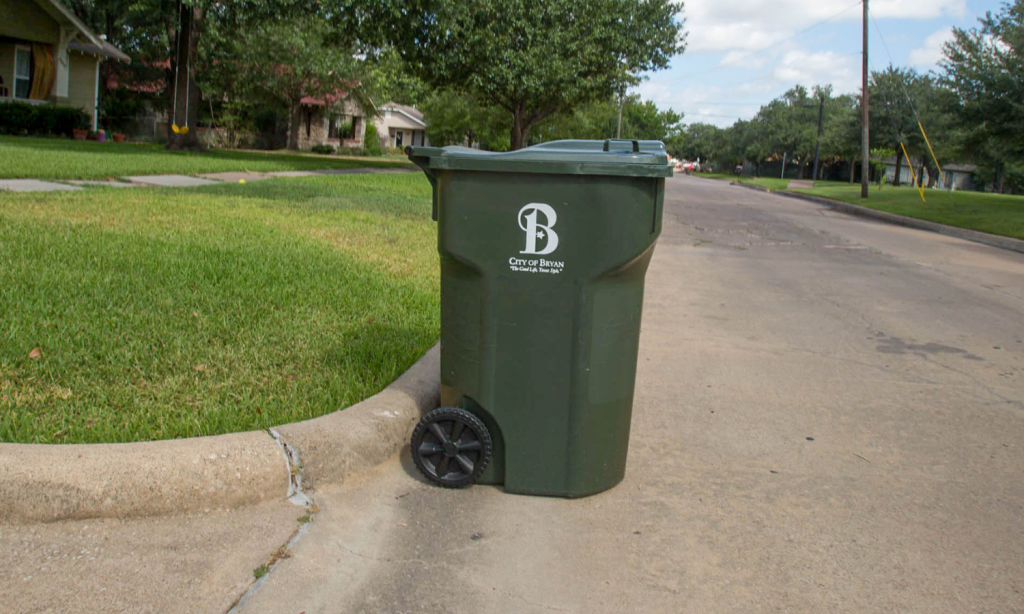 Trash service is connected to your water and electric service with BTU. If your lights are on, then you have trash collection services. Residential collection services are performed Monday through Thursday. Bryan residents are provided with one 95-gallon container for use and receive collection service once per week. Additionally, Bryan residents can, at no cost, dispose of large items such as furniture, appliances and large tree branches by utilizing our Brush & Bulky service once per week.